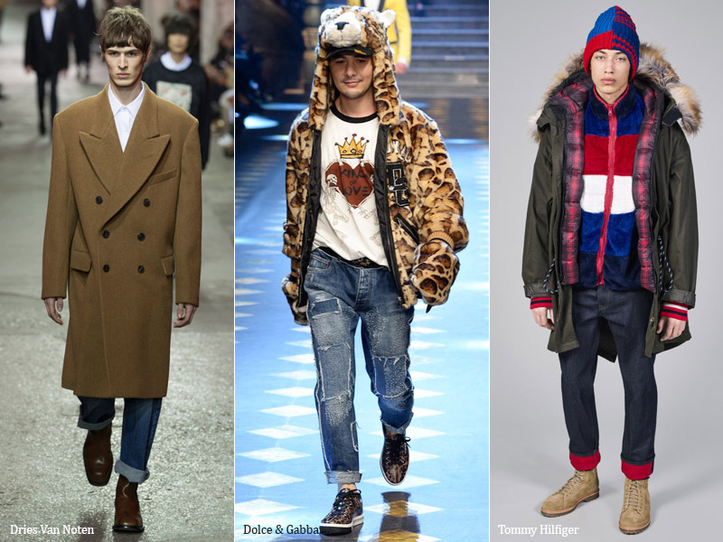 Возвращение к синтетическим, техническим материалам штурмом охватило мужскую одежду, объединив идеи уличной и активной одежды в новый, футуристический облик. Куртки, пиджаки, брюки составляют целые комплекты, которые в холодные дни дополняются теплыми вещами: меховыми жилетами. пуховиками, дубленками.