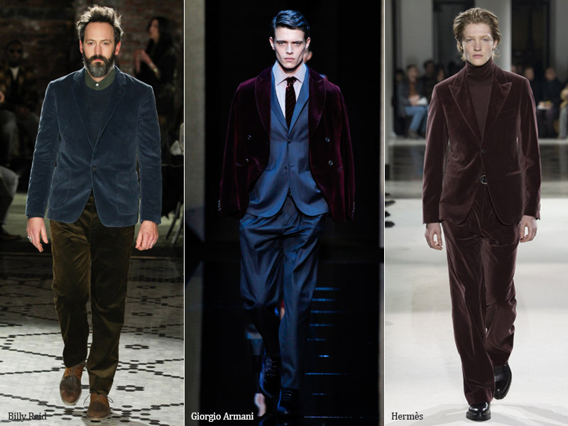 • Бархат, велюр и прочие нежные фактуры. Тренд на применение мягких фактур не единожды доказывал свою поразительную стабильность. Показы 2019 года изобилуют бархатистыми и велюровыми пиджаками, бархатными карточками и плюшевыми штанами мешковатых форм. Эти хитовые ткани апеллируют к аристократическим сюжетам Викторианской Англии, гармонично вписанным в нынешнюю мужскую моду. Использование плюша, бархата и велюра вносит ноту гламура даже в самый строгий имидж, поэтому модельеры советуют сильному полу надевать не только элегантные куртки и пиджаки, но и велюровые аксессуары в виде поясных сумок или перчаток.