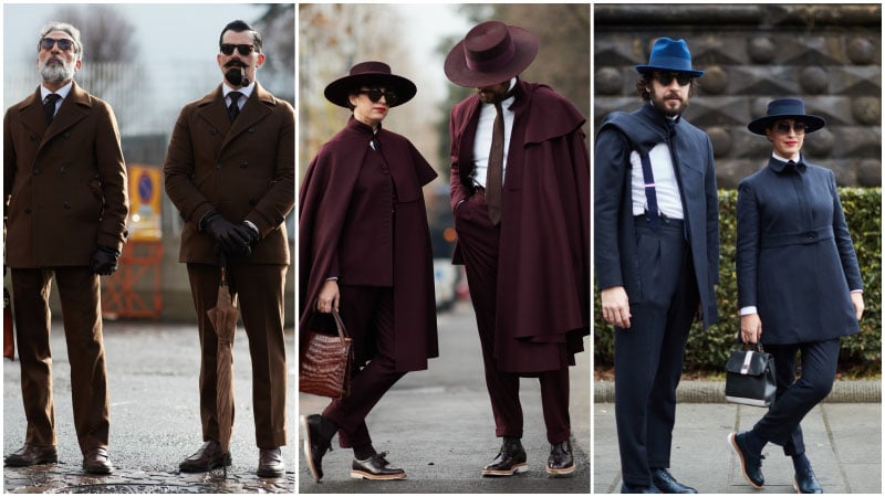 Еще один аксессуар, к которому демонстрируют любовь верные последователи моды на Pitti Uomo – это головные уборы. По-прежнему в тренде мягкие фетровые шляпы, так называемые «федоры», и прочие шляпы с широкими полями. Но главным фаворитом стиляг стали кепки. Как и водительские перчатки, этот аксессуар делает образ более традиционным и «джентльменским».