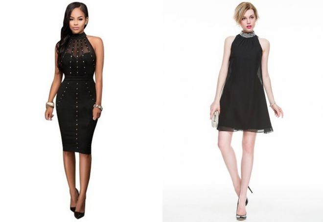 Такой наряд смотрится очень стильно и элегантно. Чтобы создать максимально эффектный лук с участием черного платья, его стоит дополнить элегантной накидкой контрастного цвета. К ней следует подобрать туфли и клатч.