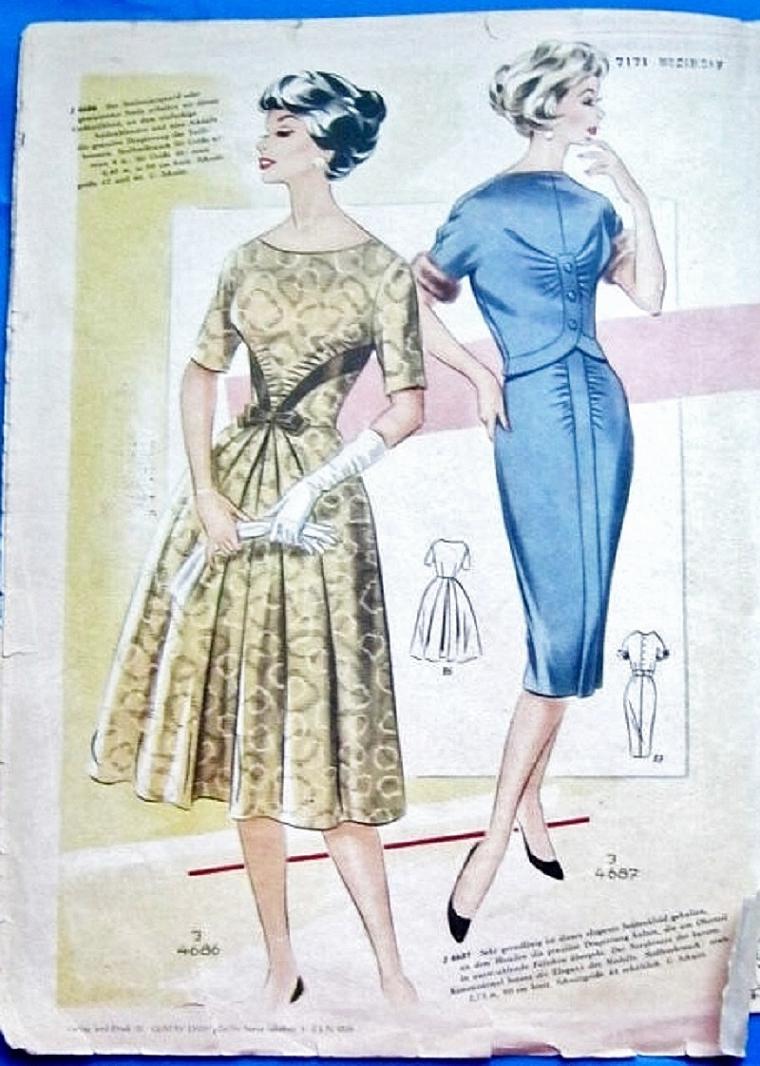 А эти журналы, Моденшау, немецкие, достались мне от мамы, правда они без выкроек, одни картинки, которыми и хочу поделиться с вами, журналы продались, но я успела их сфотографировать. В этой публикации выложу только два журнала, но если вам интересно, то есть ещё фотографии из четырёх Моденшау и ещё нескольких — таких как Божур и Журнал мод (советский), американская брошюра, все 50-60-х годов прошлого века.