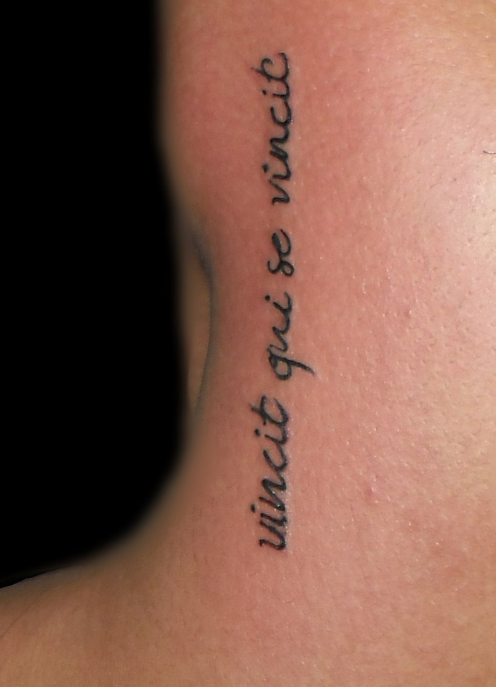 Для латинских надписей на теле главное смысловая нагрузка. Только долгий выбор значимой фразы приведет к успеху. Выражение может мотивировать, напоминать о значимых моментах, жизненных целях и приоритетах, но не должно надоесть. Прокалывая тело, вы открываете миру часть своей души и моральные ценности.